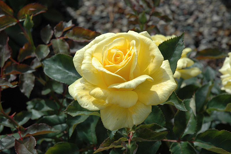 Features stunning large clusters of deep yellow blooms; a classic tea rose form that when open sends forth a fresh fruity fragrance to enthrall the senses; deep green foliage is the perfect backdrop for highlighting the golden blooms; disease resistant