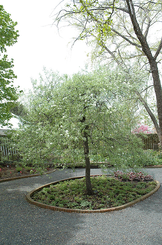 An attractive small tree with a gracefully weeping branching habit, features narrow foliage that emerges silver and matures to a silvery green; creamy white flowers in early spring; makes a great accent tree for smaller yards, allow it room to spread