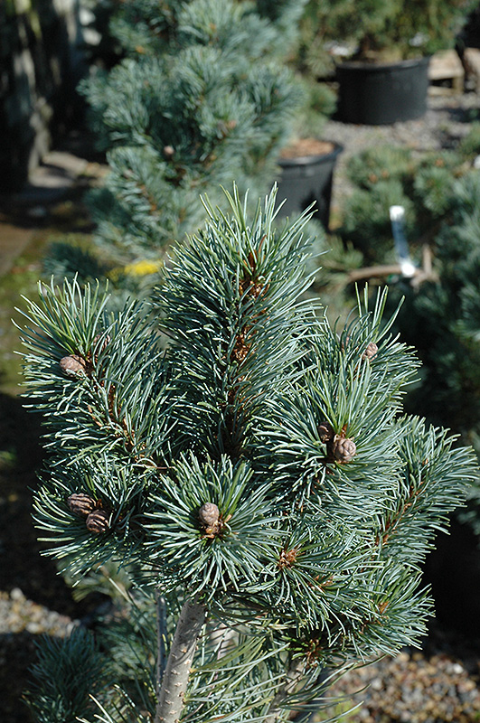 Blue Angel Japanese White Pine is a dwarf conifer which is primarily valued in the landscape or garden for its distinctively pyramidal habit of growth. It has attractive silvery blue evergreen foliage. The needles are highly ornamental and remain silvery blue throughout the winter.