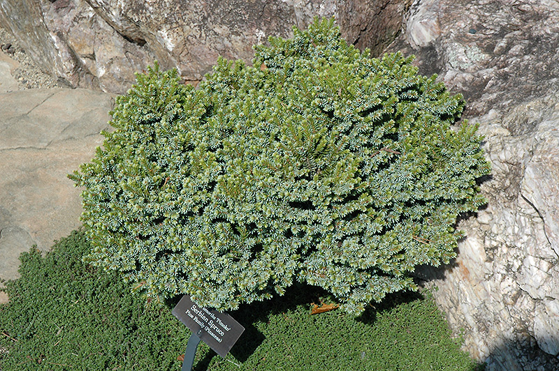 Pimoko Spruce will grow to be about 5 feet tall at maturity, with a spread of 5 feet. It tends to fill out right to the ground and therefore doesn't necessarily require facer plants in front, and is suitable for planting under power lines. It grows at a slow rate, and under ideal conditions can be expected to live for 80 years or more.