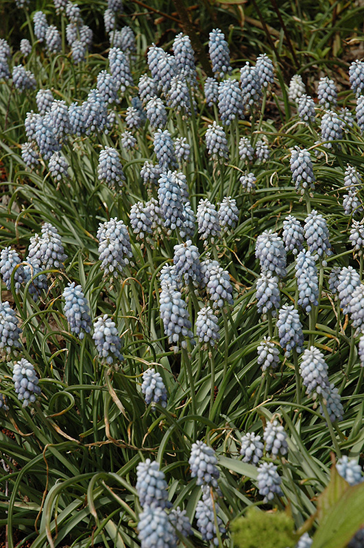 Valerie Finnis Grape Hyacinth will grow to be only 6 inches tall at maturity extending to 10 inches tall with the flowers, with a spread of 4 inches. It grows at a medium rate, and under ideal conditions can be expected to live for approximately 5 years. As an herbaceous perennial, this plant will usually die back to the crown each winter, and will regrow from the base each spring. Be careful not to disturb the crown in late winter when it may not be readily seen! As this plant tends to go dormant in summer, it is best interplanted with late-season bloomers to hide the dying foliage.