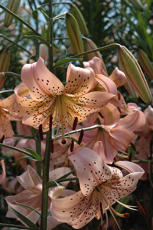 Coral Lily will grow to be about 24 inches tall at maturity, with a spread of 24 inches. When grown in masses or used as a bedding plant, individual plants should be spaced approximately 18 inches apart. It tends to be leggy, with a typical clearance of 1 foot from the ground, and should be underplanted with lower-growing perennials. It grows at a fast rate, and under ideal conditions can be expected to live for approximately 10 years. As an herbaceous perennial, this plant will usually die back to the crown each winter, and will regrow from the base each spring. Be careful not to disturb the crown in late winter when it may not be readily seen!