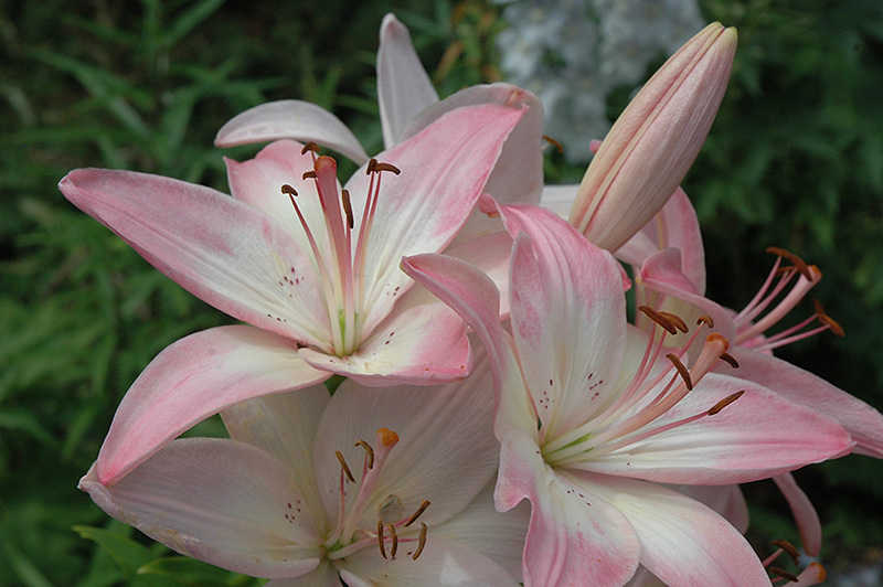 A stunning lily with gorgeous large white blooms that fade to pure pink at the tips, very few freckles in the eye of the flower; a spectacular plant with a soft elegant look, excellent for the border or mass planting