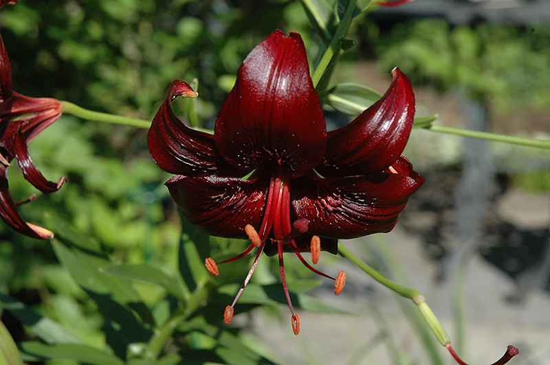 In The Zone Lily features bold nodding red trumpet-shaped flowers with black throats at the ends of the stems in mid summer. The flowers are excellent for cutting. Its narrow leaves remain green in colour throughout the season.