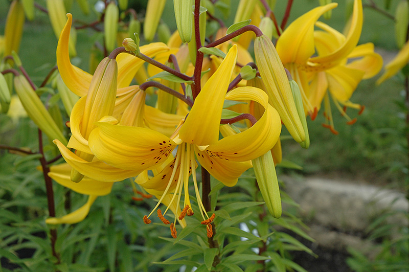 Alex 2 Lily features bold nodding yellow trumpet-shaped flowers with brown spots at the ends of the stems in mid summer. The flowers are excellent for cutting. Its narrow leaves remain green in colour throughout the season.