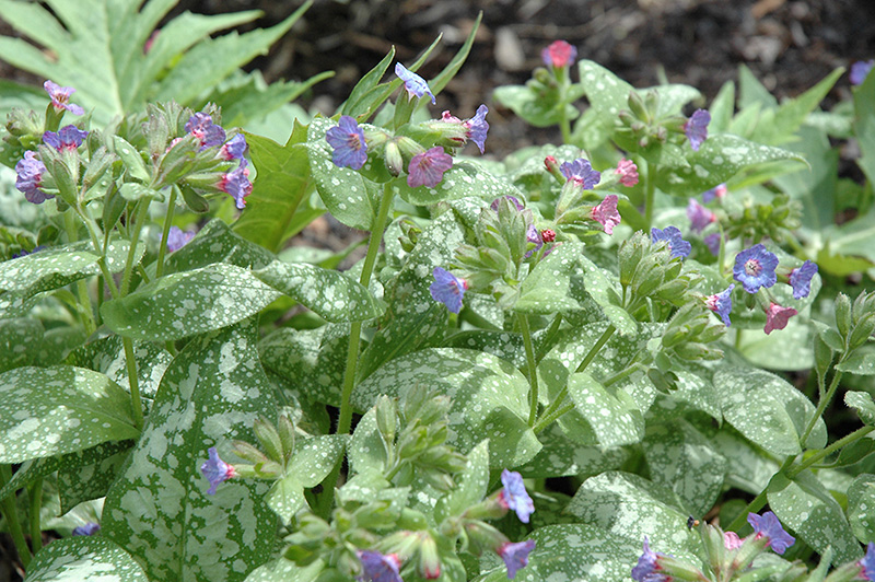 Paul Aden Lungwort will grow to be about 10 inches tall at maturity, with a spread of 15 inches. When grown in masses or used as a bedding plant, individual plants should be spaced approximately 12 inches apart. Its foliage tends to remain low and dense right to the ground. It grows at a medium rate, and under ideal conditions can be expected to live for approximately 10 years. As an herbaceous perennial, this plant will usually die back to the crown each winter, and will regrow from the base each spring. Be careful not to disturb the crown in late winter when it may not be readily seen!