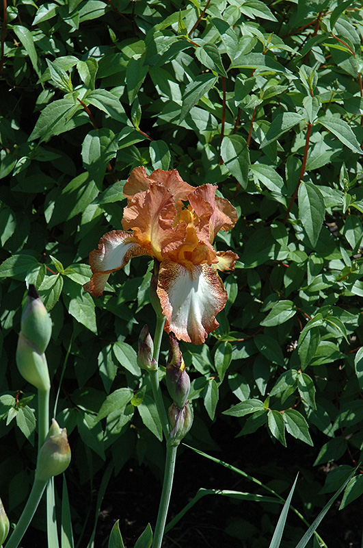 Henna Stitches Iris is an herbaceous perennial with an upright spreading habit of growth. Its medium texture blends into the garden, but can always be balanced by a couple of finer or coarser plants for an effective composition.