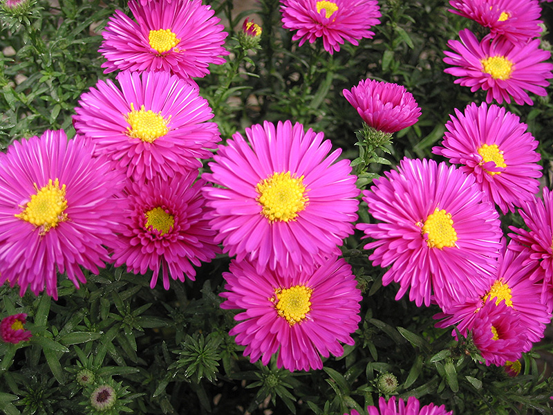 Loke Viking Aster has masses of beautiful cherry red daisy flowers with yellow eyes at the ends of the stems from late summer to late fall, which are most effective when planted in groupings. The flowers are excellent for cutting. Its narrow leaves remain dark green in colour throughout the season.
