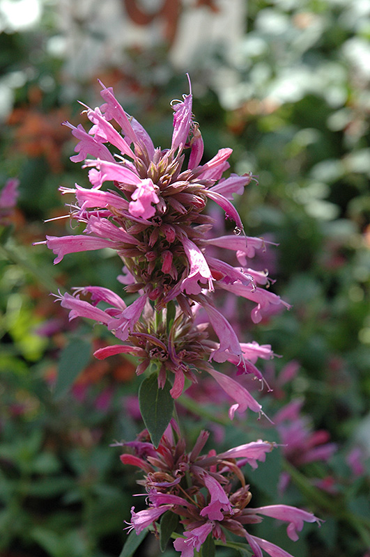 Airy tubular spikes of rose colored flowers complement coarser textured perennials in the garden; attracts hummingbirds and other pollinators; aromatic licorice scented, bronze-green foliage