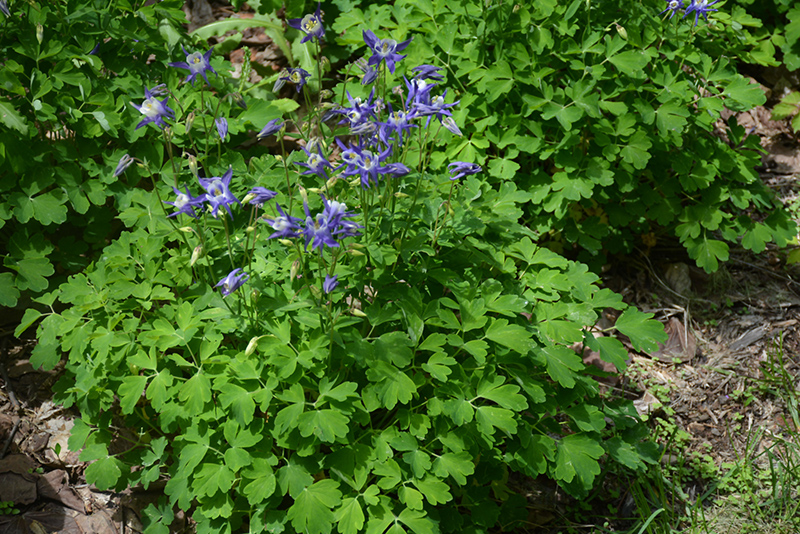 Winky Blue And White Columbine will grow to be about 14 inches tall at maturity extending to 20 inches tall with the flowers, with a spread of 12 inches. Its foliage tends to remain dense right to the ground, not requiring facer plants in front. It grows at a medium rate, and under ideal conditions can be expected to live for approximately 5 years. As an herbaceous perennial, this plant will usually die back to the crown each winter, and will regrow from the base each spring. Be careful not to disturb the crown in late winter when it may not be readily seen!