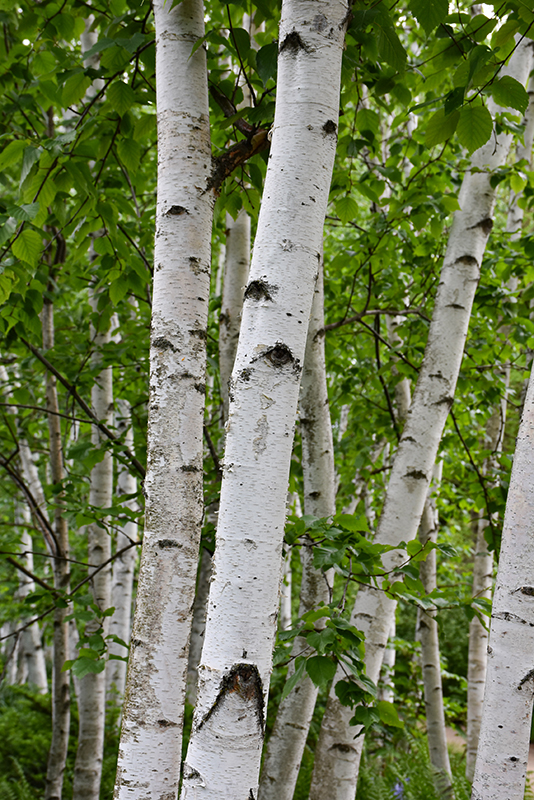 This birch is valued for its stunning white bark, with tan and pinkish colors peeling from mature trunks; good fall color; acidic soil best, susceptible to chlorosis in alkaline soils; resistance to birch borer has been reported