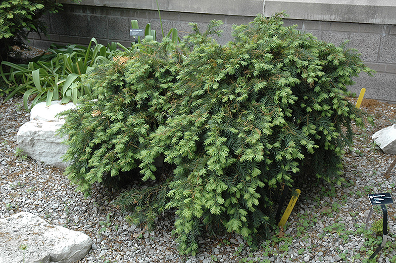 This dwarf selection is more shrubby with needles shorter and finer in texture than the species; shows heat tolerance, a good substitute for yews in the southern heat; has some drought tolerance once established