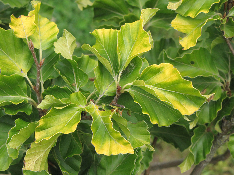 An incredible accent tree with smooth gray bark; incised gold leaves in spring turn to light-green during summer then gold in the fall; a most stately specimen;particular about growing conditions, requires rich soil and moisture; smaller beech