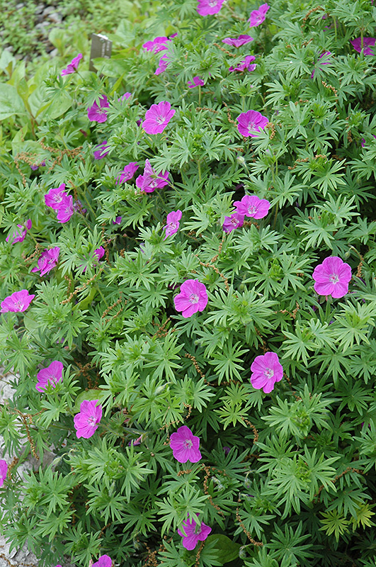 Showy, long-lasting, saucer-shaped flowers are a beautiful magenta pink with purple stripes; both flowers and leaves are larger than the species; deadhead spent flowers for reblooming later in the season