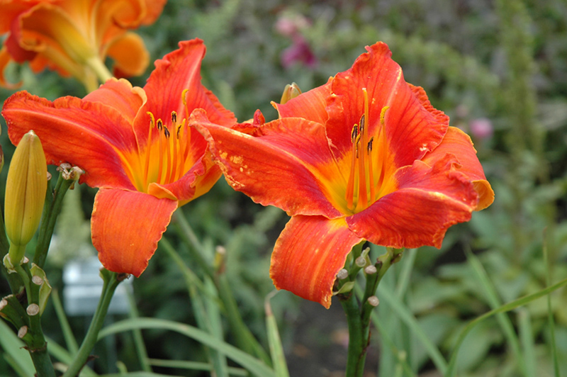 Large orange flowers with yellow undertones; midseason bloomer