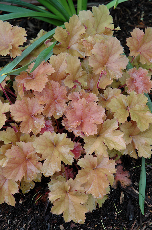 Abundance of light pink bells rise from a compact mound of rose and peach foliage; foliage matures to peach with silver overlay; amazing contrast to other plants;great versatility; keep soil moist in heat of summer