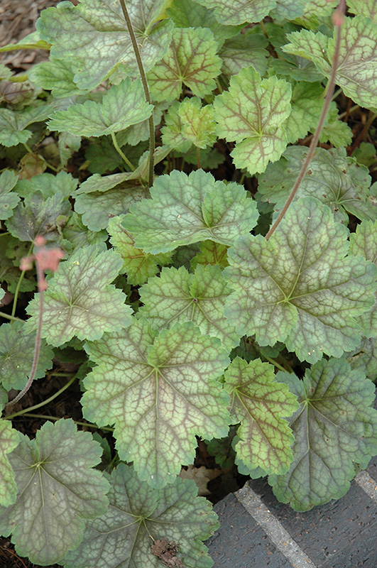 Oakington Jewel Coral Bells will grow to be about 18 inches tall at maturity extending to 30 inches tall with the flowers, with a spread of 18 inches. When grown in masses or used as a bedding plant, individual plants should be spaced approximately 15 inches apart. Its foliage tends to remain dense right to the ground, not requiring facer plants in front. It grows at a medium rate, and under ideal conditions can be expected to live for approximately 10 years. As an evegreen perennial, this plant will typically keep its form and foliage year-round.