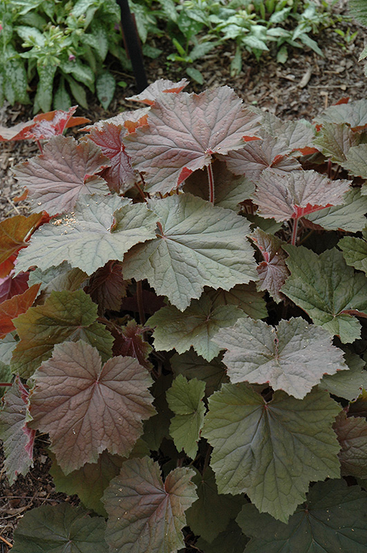 Purpurea Coral Bells will grow to be about 18 inches tall at maturity extending to 3 feet tall with the flowers, with a spread of 24 inches. When grown in masses or used as a bedding plant, individual plants should be spaced approximately 20 inches apart. Its foliage tends to remain dense right to the ground, not requiring facer plants in front. It grows at a medium rate, and under ideal conditions can be expected to live for approximately 10 years. As an evegreen perennial, this plant will typically keep its form and foliage year-round.