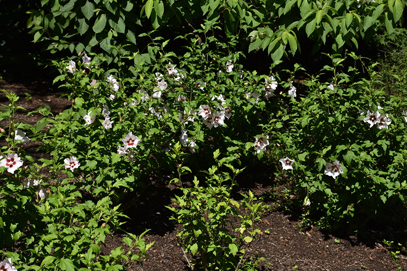 Blush Satin® Rose of Sharon will grow to be about 10 feet tall at maturity, with a spread of 6 feet. It tends to be a little leggy, with a typical clearance of 2 feet from the ground, and is suitable for planting under power lines. It grows at a medium rate, and under ideal conditions can be expected to live for 40 years or more.