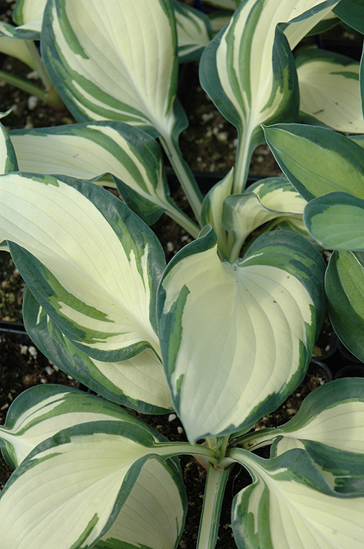 A beautiful variety perfect for shaded beds, borders and containers; dense mounds of bright, creamy white leaves with blue-green margins add texture, color and contrast; pale lavender flowers appear in the mid summer months; low maintenance