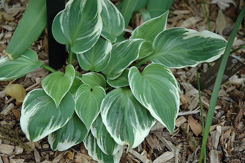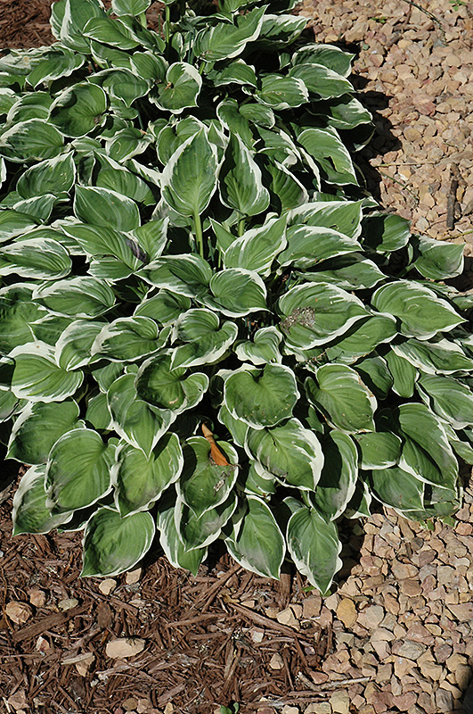 A small variety featuring mounds of green, heart-shaped leaves with narrow white margins and variegations; pale lavender flowers appear in mid-summer; adds color, texture and contrast to beds, borders and containers; easy to grow and low maintenance