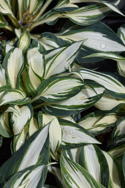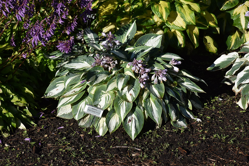 High Society Hosta features dainty spikes of lavender tubular flowers rising above the foliage from mid to late summer. Its attractive small textured oval leaves remain white in colour with showy bluish-green variegation throughout the season.