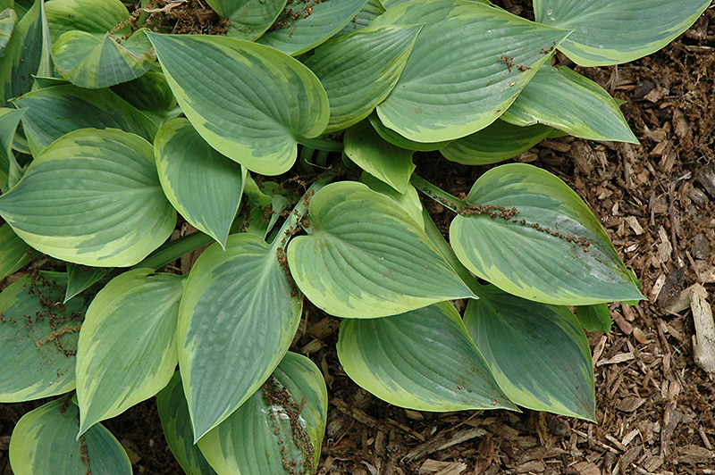 A wonderful upright mounded variety featuring dense mounds of blue-green foliage with bright chartreuse margins; great for adding texture and color to shaded beds and borders; pale lavender flowers appear on tall scapes in midsummer