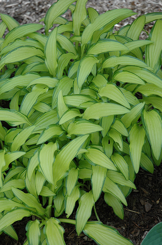 Kabitan Hosta will grow to be about 8 inches tall at maturity extending to 12 inches tall with the flowers, with a spread of 12 inches. When grown in masses or used as a bedding plant, individual plants should be spaced approximately 10 inches apart. Its foliage tends to remain low and dense right to the ground. It grows at a medium rate, and under ideal conditions can be expected to live for approximately 10 years. As an herbaceous perennial, this plant will usually die back to the crown each winter, and will regrow from the base each spring. Be careful not to disturb the crown in late winter when it may not be readily seen!