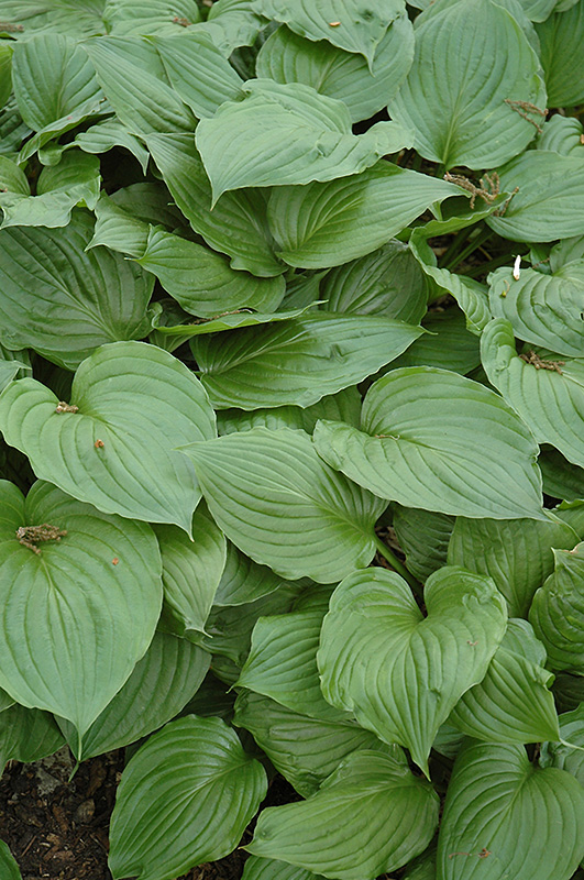 Fast growing and easy to maintain, this variety features large mounds of rigid, dark green heart shaped foliage; white flowers with touches of purple rise above mounds on tall arching scapes in mid summer; perfect for shaded beds and borders
