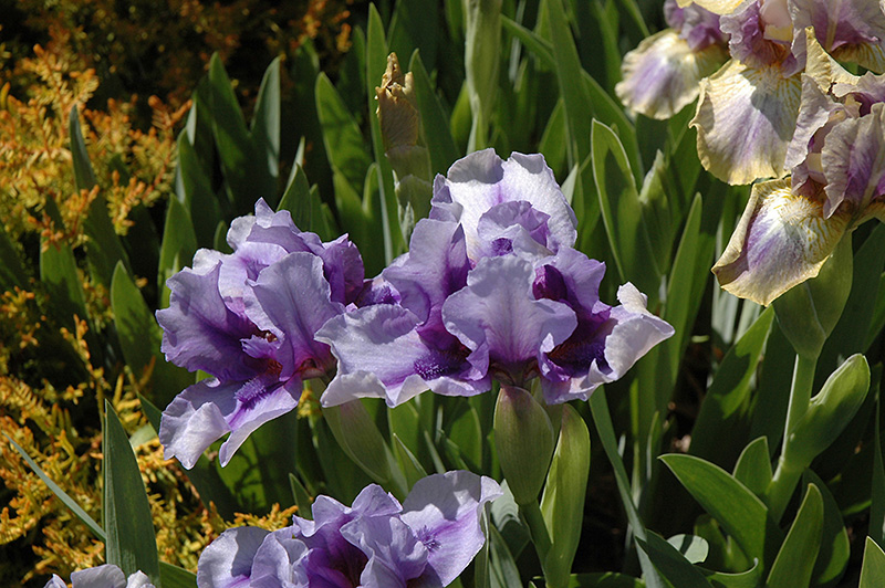Forever Violet Iris features showy powder blue flag-like flowers with violet overtones at the ends of the stems in early summer. The flowers are excellent for cutting. Its sword-like leaves remain green in colour throughout the season.