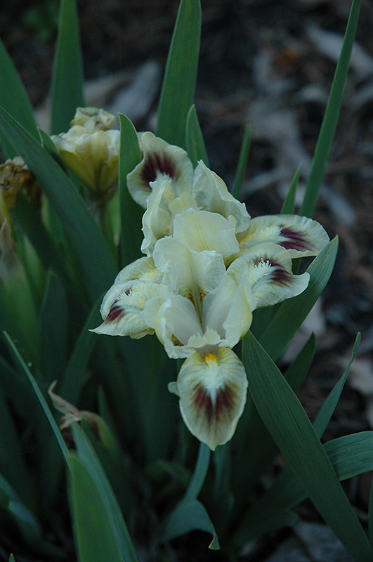 Ivory Fashion Iris will grow to be only 6 inches tall at maturity extending to 12 inches tall with the flowers, with a spread of 12 inches. When grown in masses or used as a bedding plant, individual plants should be spaced approximately 10 inches apart. Its foliage tends to remain low and dense right to the ground. It grows at a medium rate, and under ideal conditions can be expected to live for approximately 10 years. As an herbaceous perennial, this plant will usually die back to the crown each winter, and will regrow from the base each spring. Be careful not to disturb the crown in late winter when it may not be readily seen!