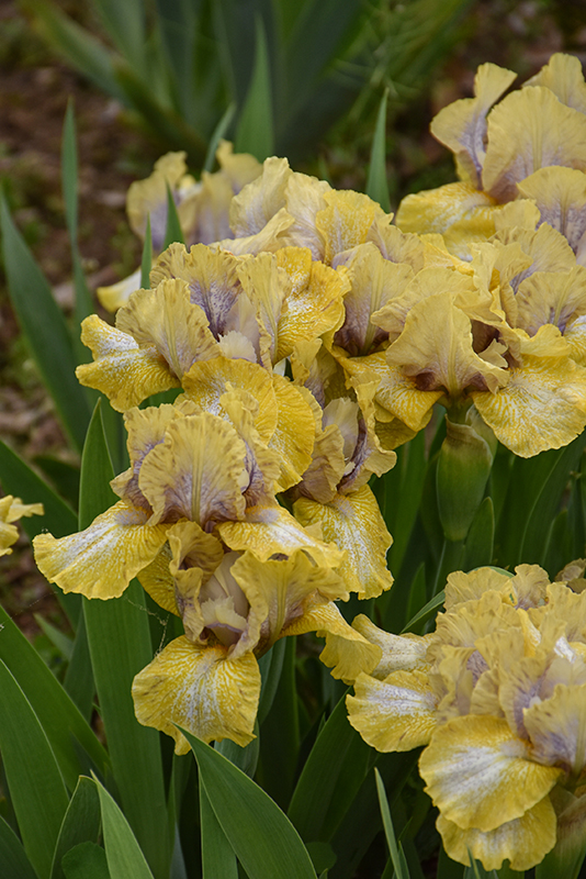 Paradigm Shift Iris features showy buttery yellow flag-like flowers with violet overtones at the ends of the stems in mid spring. The flowers are excellent for cutting. Its sword-like leaves remain green in colour throughout the season.