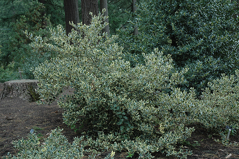 Silver Hedgehog Holly is primarily valued in the landscape or garden for its distinctively pyramidal habit of growth. It has attractive dark green foliage edged in creamy white. The spiny oval leaves are highly ornamental and remain dark green throughout the winter.