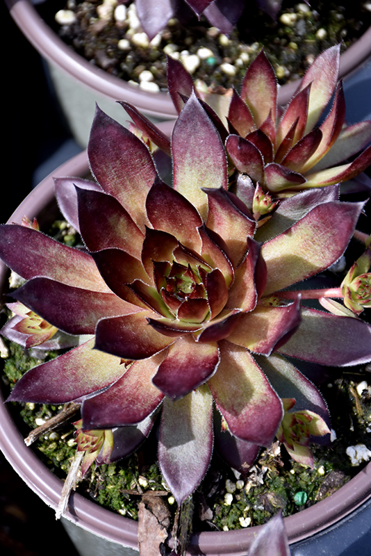 Firebird Hens And Chicks will grow to be only 4 inches tall at maturity extending to 12 inches tall with the flowers, with a spread of 12 inches. When grown in masses or used as a bedding plant, individual plants should be spaced approximately 10 inches apart. Its foliage tends to remain low and dense right to the ground. It grows at a medium rate, and under ideal conditions can be expected to live for approximately 20 years. As an herbaceous perennial, this plant will usually die back to the crown each winter, and will regrow from the base each spring. Be careful not to disturb the crown in late winter when it may not be readily seen!