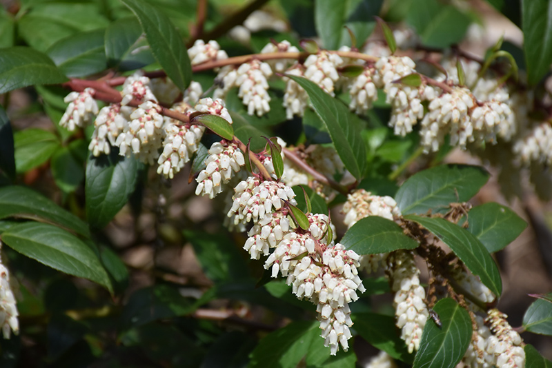 Fetterbush features showy racemes of fragrant white bell-shaped flowers hanging below the branches from late spring to early summer. It has attractive dark green evergreen foliage which emerges burgundy in spring. The glossy pointy leaves are highly ornamental and remain dark green throughout the winter. The red branches add an interesting dimension to the landscape.