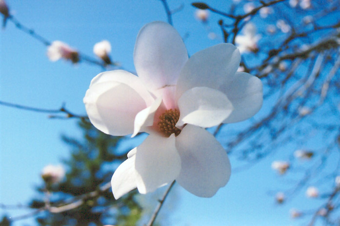 A stunning accent tree for general landscape use, featuring large snow-white flowers in spring, neat foliage turning yellow in fall, and picturesque habit of growth; the most cold hardy magnoila available; may take a number of years to flower