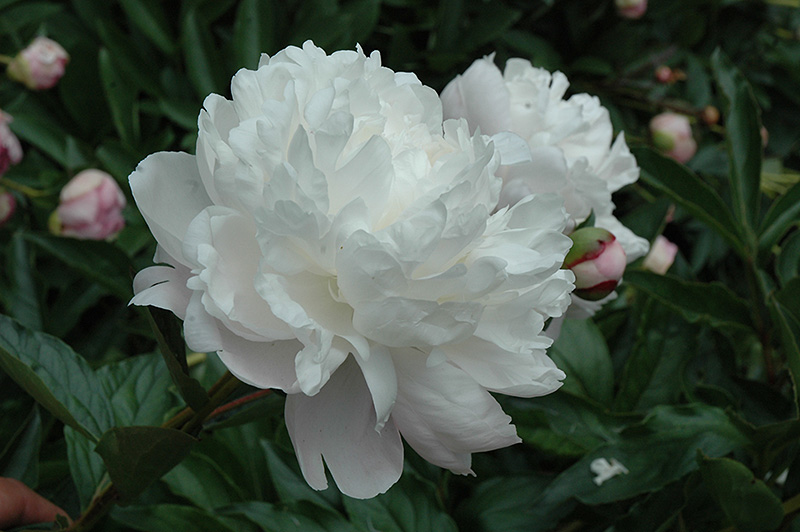 This luxurious double peony is a late bloomer, extending your peony season; the buds open to reveal blush shell pink blooms that mature to white; the fragrant flowers open on stiff stems making them an excellent cut flower