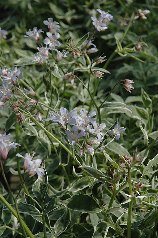 A wonderful woodland phlox with small lance shaped leaves edged in white that have a pink tinge in spring; attractive and fragrant lavender blue flowers cover the plant in early summer; not prone to mildew and grows best in slightly dry conditions