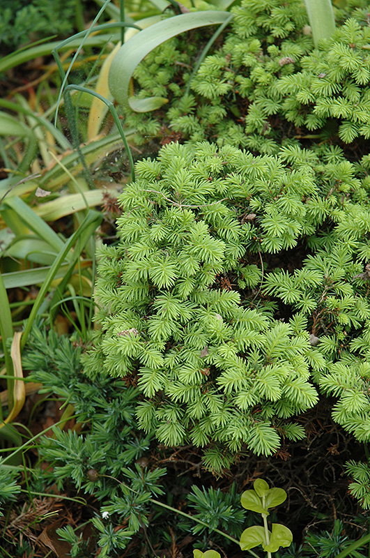 A truly miniature spruce forming a tight dense mounded globe with attractive bright green foliage; excellent choice for a rock garden, garden accent, or container specimen in an open sunny location