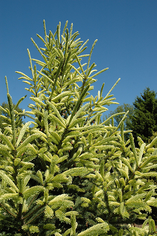 McConnell's Gold Spruce is primarily valued in the landscape for its distinctively pyramidal habit of growth. It has attractive green evergreen foliage which emerges buttery yellow in spring. The needles are highly ornamental and remain green throughout the winter.