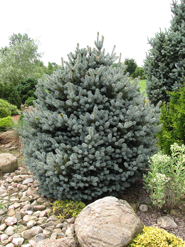 Corbet Blue Spruce is a dense multi-stemmed evergreen shrub with a distinctive and refined pyramidal form. Its average texture blends into the landscape, but can be balanced by one or two finer or coarser trees or shrubs for an effective composition.