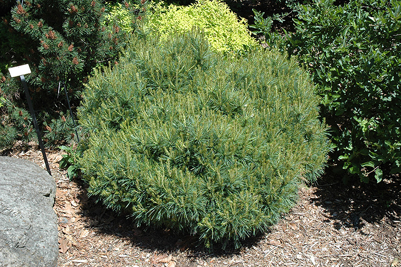 A refined evergreen garden shrub with a dense, globe-shaped habit of growth throughout its life, features sea green needles; very compact and slow growing, excellent for detail in home gardens or for rock or alpine gardens; needs full sun