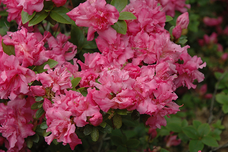 Beautiful pink double blooms adorn this sturdy low growing rounded variety in mid spring; an accent shrub that will definitely make an impact along borders; absolutely must have well-drained, highly acidic and organic soil