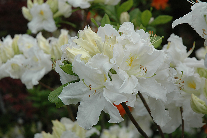 Stunning clusters of frilly white blooms with yellow blotches cover this hardy azalea in mid to late spring; an upright and airy shrub that would be wonderful in borders or as an accent shrub; needs highly acidic and organic soil that is well drained