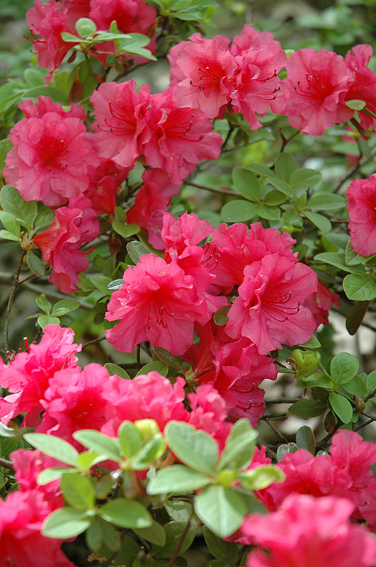 Attractive pink blooms with cherry red eyes adorn this elegant variety in mid spring; leaves are small, creating a fine overall look, it will definitely make an impact along borders; absolutely must have well-drained, highly acidic and organic soil