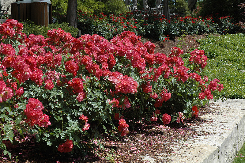 Cinco de Mayo Rose will grow to be about 4 feet tall at maturity, with a spread of 3 feet. It tends to fill out right to the ground and therefore doesn't necessarily require facer plants in front. It grows at a fast rate, and under ideal conditions can be expected to live for approximately 30 years.