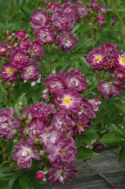 This stunning variety has unique velvety dark purple blooms grouped in clusters throughout the summer; the garden air and beyond is filled with a strong spicy frangrance; traditional looking blooms are lovely as cut flowers; highly disease resistant