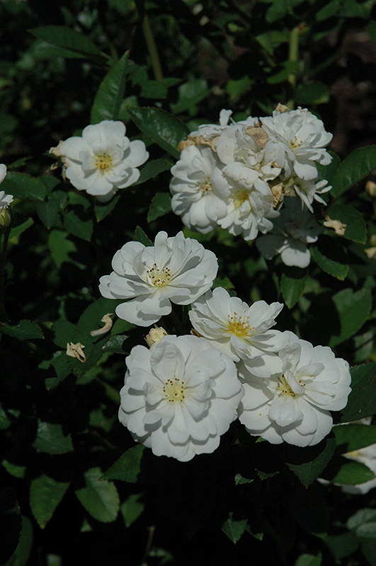 A wonderfully fragrant double rose that produces deep yellow blooms that fade to a creamy white; blooms constantly until the first frost; the deep green foliage provides excellent contrast; all roses need full sun and well-drained soil