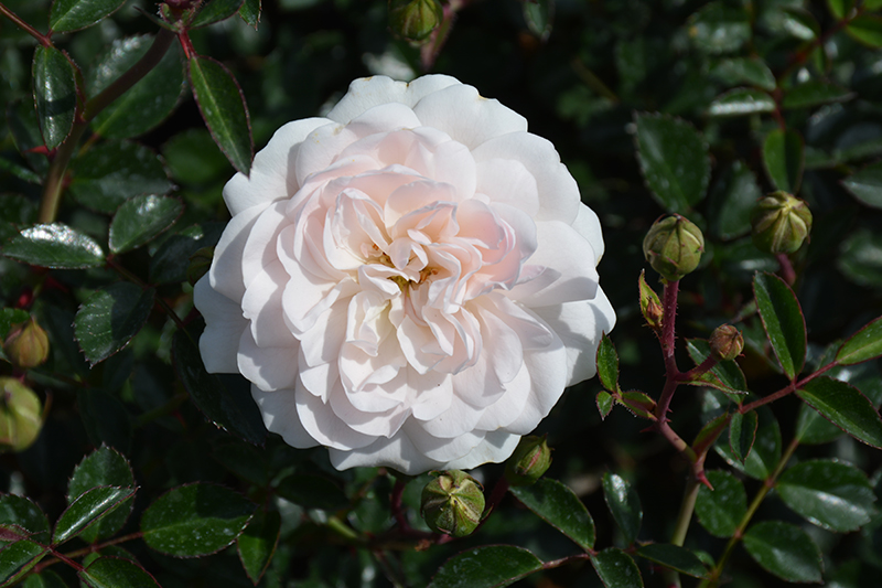 Sea Foam Rose features showy lightly-scented fully double creamy white ball-shaped flowers at the ends of the branches from early summer to mid fall. The flowers are excellent for cutting. It has dark green deciduous foliage. The small glossy oval compound leaves do not develop any appreciable fall colour.