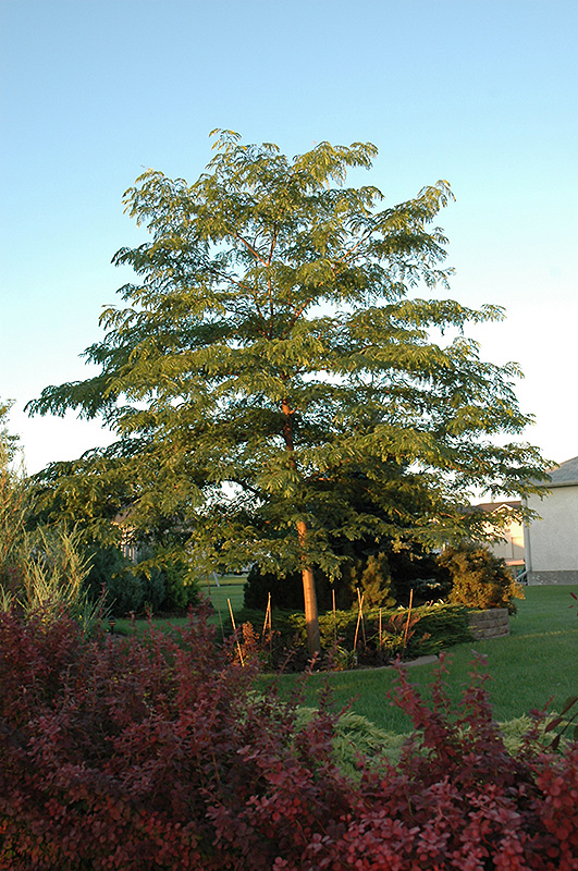 A fine shade tree valued for its delicate, ferny appearance which casts a dappled shade below, and strongly horizontal habit of growth; very tolerant of adverse growing conditions, seedless, one of the hardiest varieties of this species